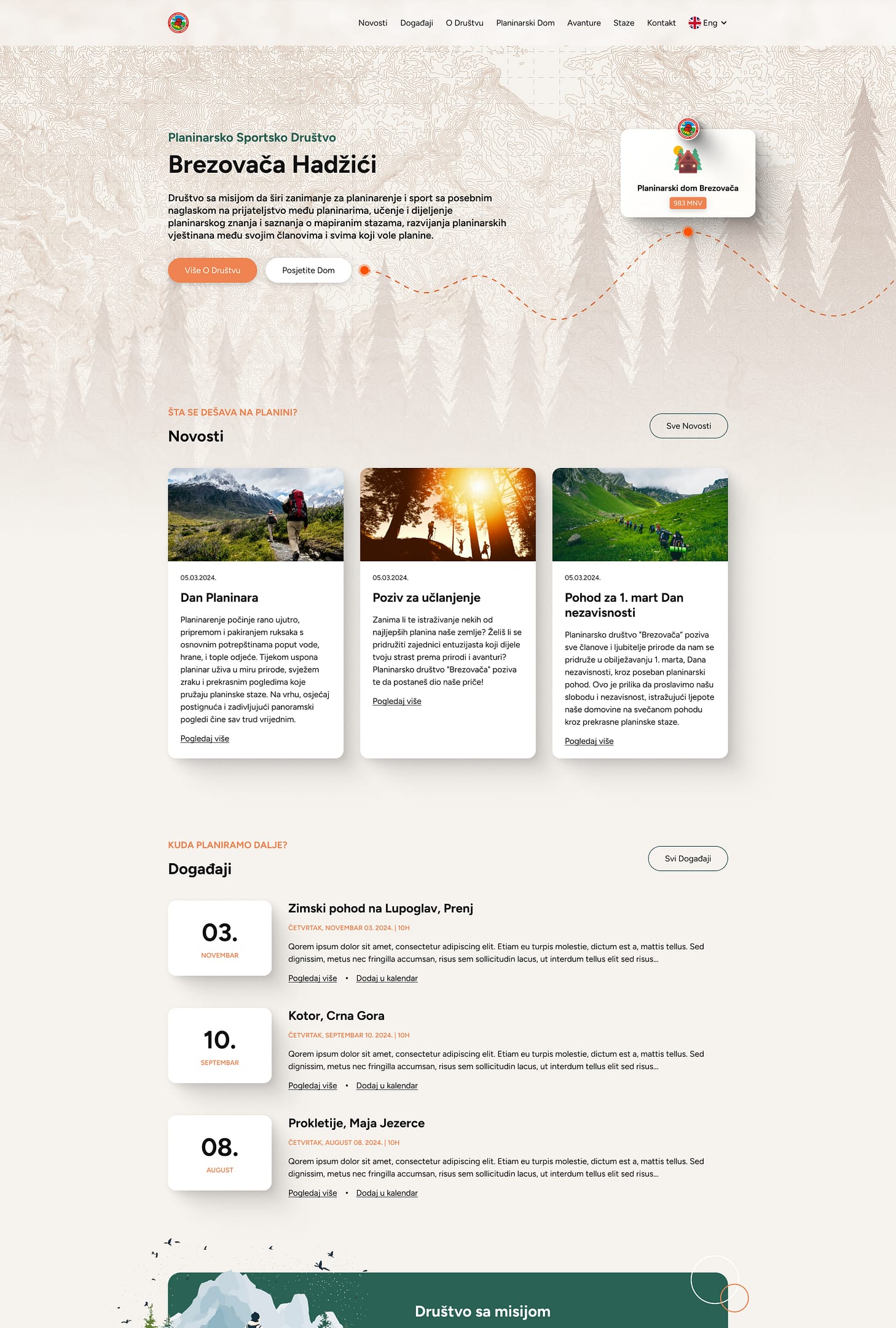 Visit websiteMy friends at the mountaineering club Brezovača approached me with the idea of creating a website that would represent the club and its activities. They wanted a website to be interactive, and besides connecting with people, they wanted to help others and make the community better.