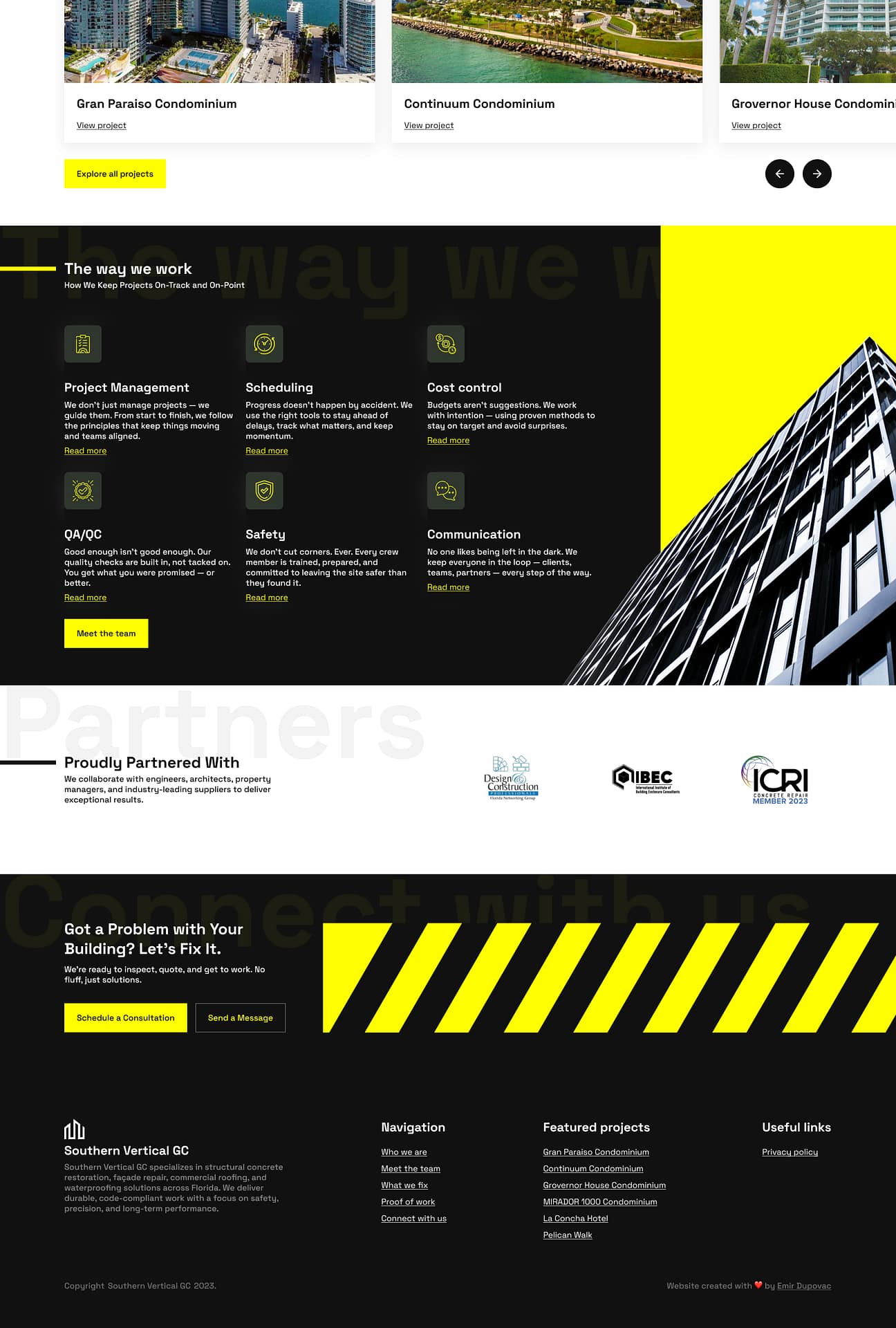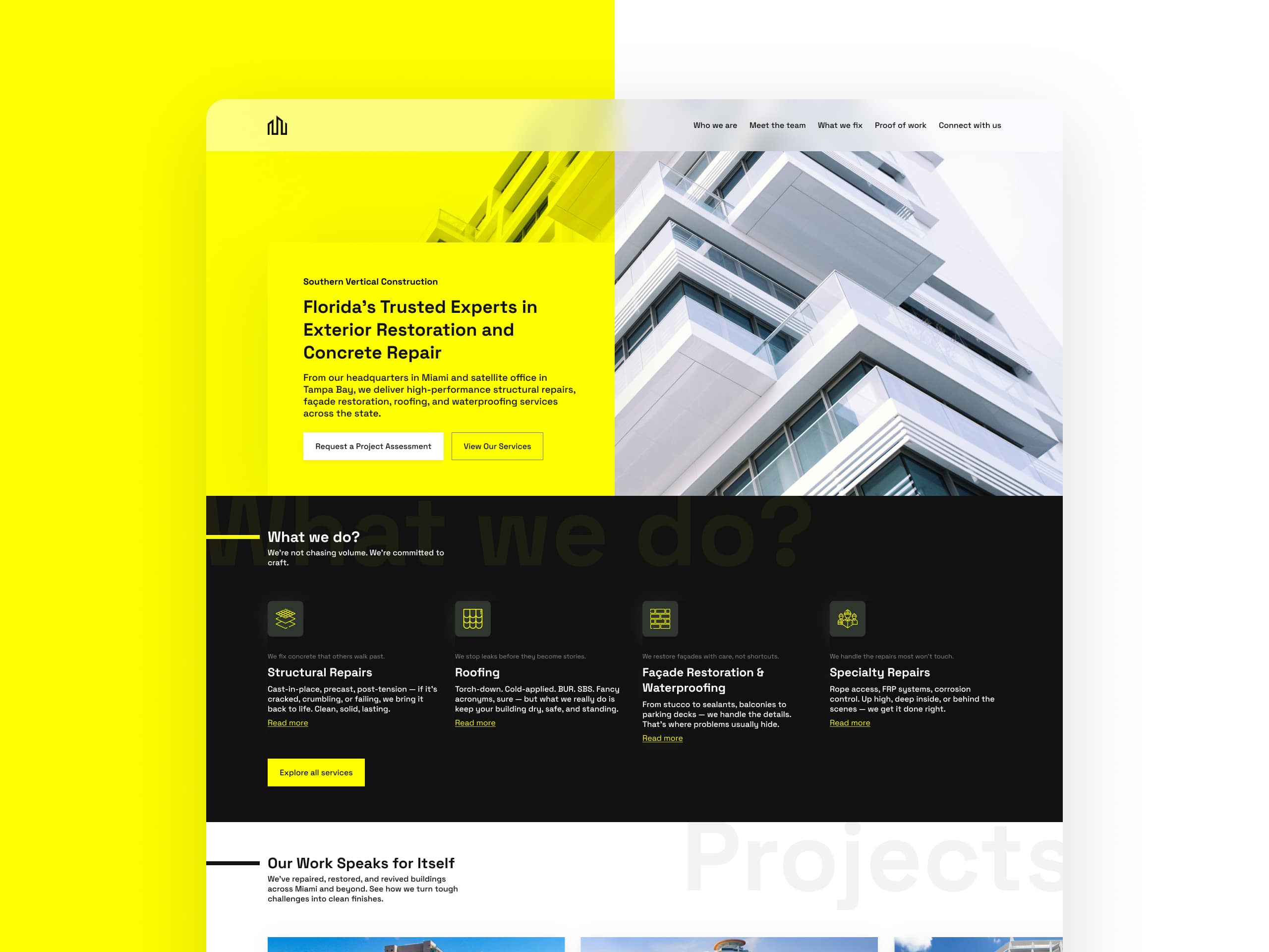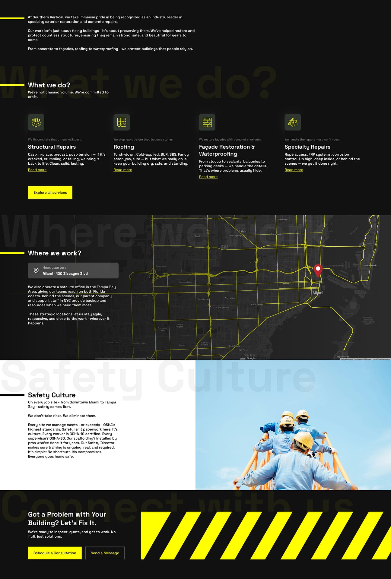 Southern Vertical Construction, a company specializing in high-quality construction services, approached me to create their first website. The goal was to establish credibility online, highlight their expertise, and make it easy for potential clients to explore services and get in touch.